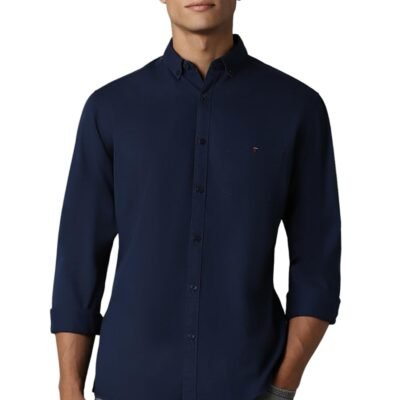 Louis Philippe Cotton Men’s Slim FiT-Shirt (Lrsfnslpa61514_Navy