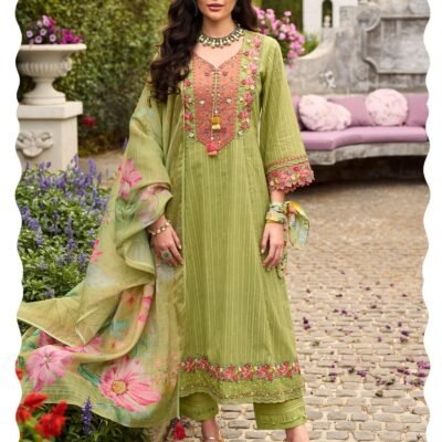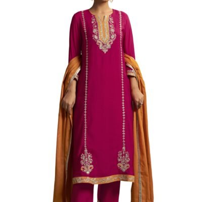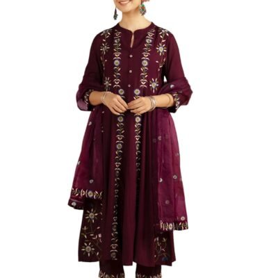 Arangya Women’s Viscose Silk Embroidered Kurta & Matching Pants with Mustard Dupatta Set Outfit for Weddings & Celebrations Ethnic Suit