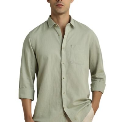 Peter England Men Green Textured Full Sleeves Casual Shirt