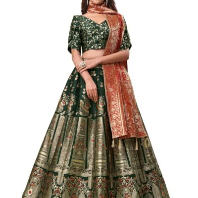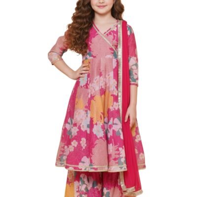 INDO ERA Women’s Anarkali Pure Cotton Floral Printed Embroidered Kurta & Pant with Dupatta Set (Green_IEOUT10687_Large)