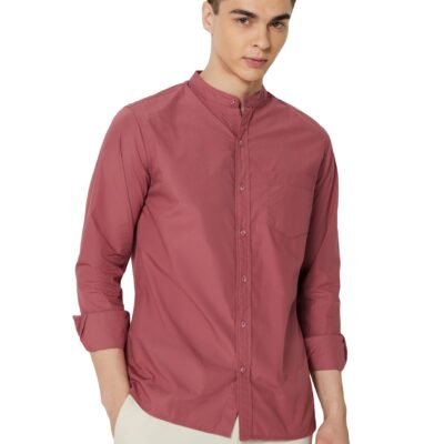 Symbol Premium Men’s Mandarin Collar Casual Cotton Poplin Shirt – Regular Fit |Full Sleeve | 100% Cotton | Available in Plus Size Dusty Pink