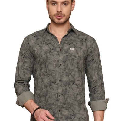Majestic Man Printed Pure Cotton Slim Fit Casual Shirt (Grey, Large)
