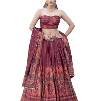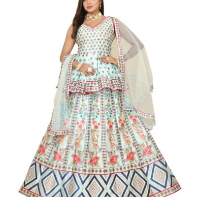 Lehenga Choli Indo-Western Draped Set For Womens And Girls Trending Digital Print Hevay Pure Organza digital printed 8mtr flair lehnga Lehenga Blouse Wedding Party Letest Off White