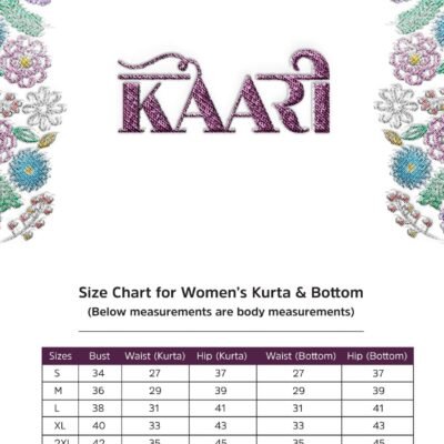 Kaari Women’s Embroidered Kurta Set with Dupatta – A-line Fit | Organza Dupatta with Multi-color Embroidery | Straight Pant with Side Pocket | Kurta Set For Women