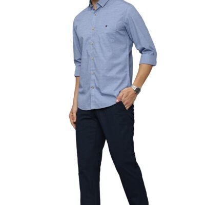 Louis Philippe Men’s Cotton Slim Fit Shirt (LYSFCSLBV39256_Blue 42)