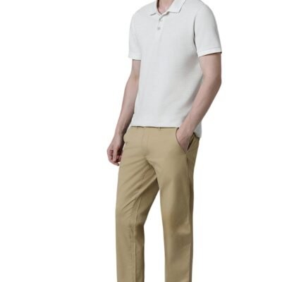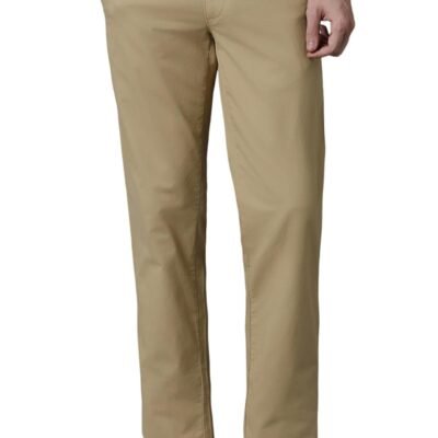 Louis Philippe Men’s Mid Rise Slim Pants (LYTFCSLP970366_Khaki, 34