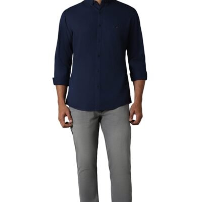 Louis Philippe Cotton Men’s Slim FiT-Shirt (Lrsfnslpa61514_Navy