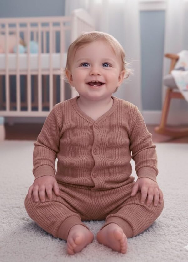 - Soft Thermal Fabric: Made from gentle ribbed thermal material that provides warmth while staying breathable ensuring irritation-free comfort for delicate baby skin.