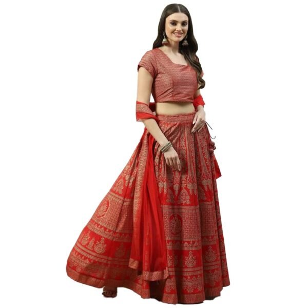 BIBA Women’s Ethnic Tomato Red Polyester Lehenga Set