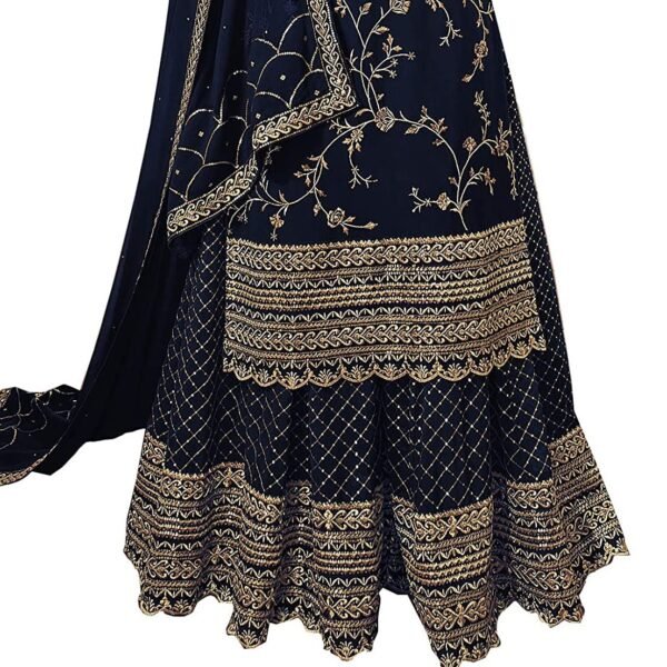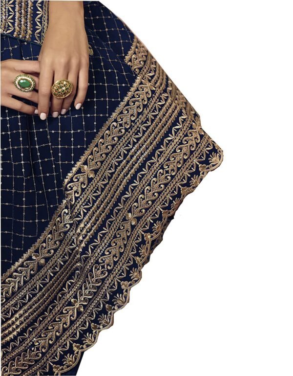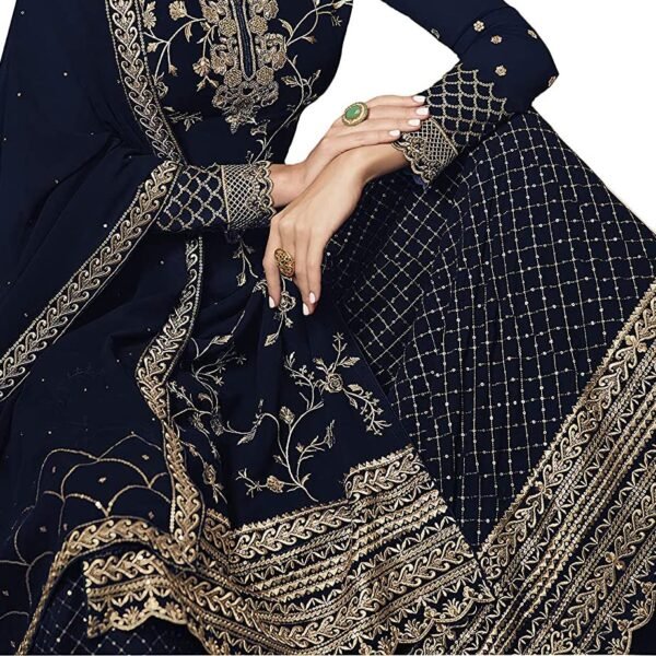 Miss Ethnik Black Faux Georgette Kurta Palazzo Set with Semi-Stitched Top, Stitched Bottom and Dupatta – Embroidered Straight Kurta Dress Material for Women’s, Blue