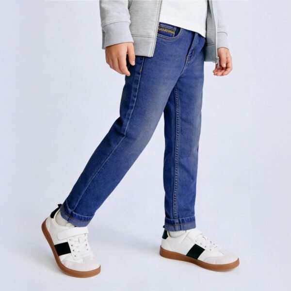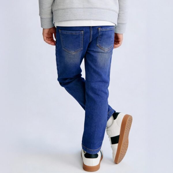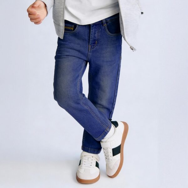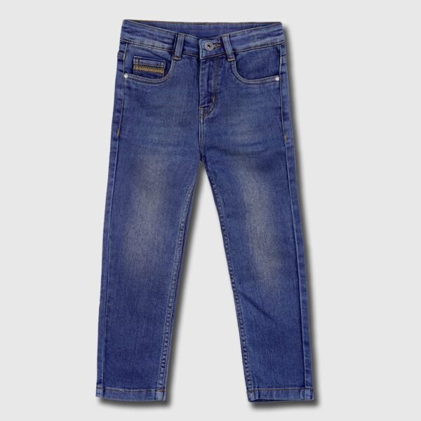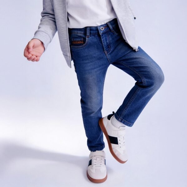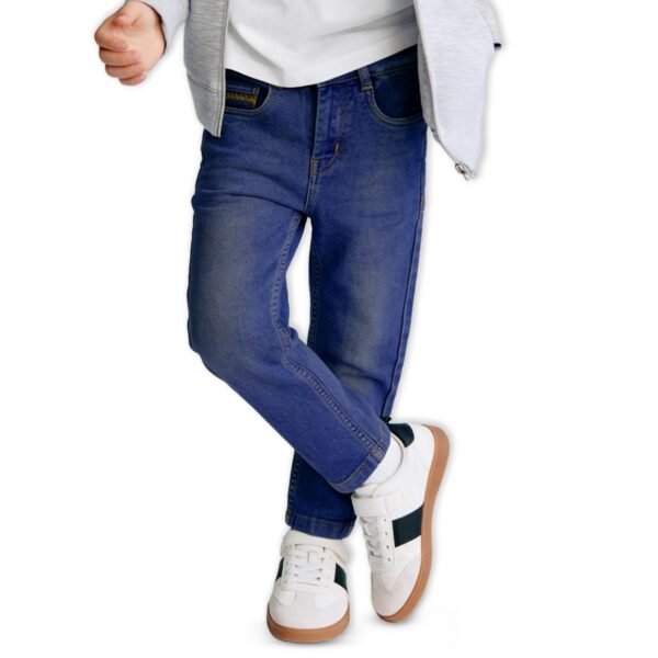 Give your child the perfect mix of comfort and everyday style with the Purple United Kids boys blue denim jeans, made to be a dependable wardrobe essential. Made from soft and breathable denim material, these jeans are ideal for busy kids who require dependable daily wear that is both fashionable and practical. The jeans have an ageless 5-pocket design that never fades out, including two front pockets, two back pockets, and a coin pocket for additional functionality. The button-and-zip style offers a snugger fit, while the regular fit style ensures comfortable movement and relaxed demeanor, which is perfect forl outings, or casual meetups The faded wash finish provides a cool, lived-in appearance that easily combines with T-shirts, shirts, or sweatshirts, providing plenty of options for a variety of occasions for kids. Contrast stitch detailing at the end completes these jeans, adding a refined touch to an enduring denim classic. .The faded wash finish provides a cool, lived-in appearance that easily combines with T-shirts, shirts, or sweatshirts, providing plenty of options for a variety of occasions for kids. Contrast stitch detailing at the end completes these jeans, adding a refined touch to an enduring denim classic.