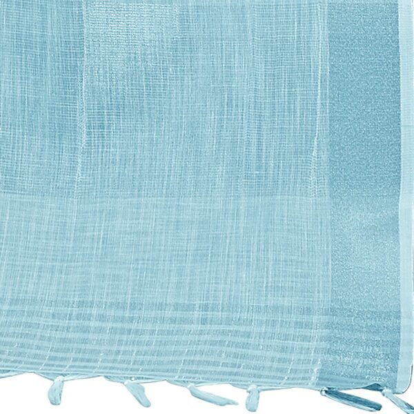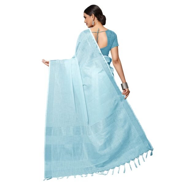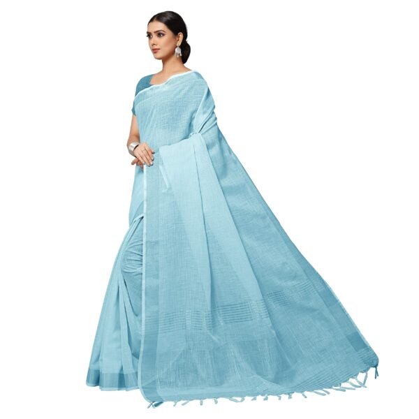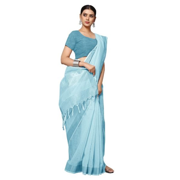 Rekha Maniyar Women’s Jacquard Linen Blue Saree with Unstitched Blouse Piece | Solid Design with Zari Border | 6.3 m Saree & 0.8 m Blouse | Evening & Ceremony