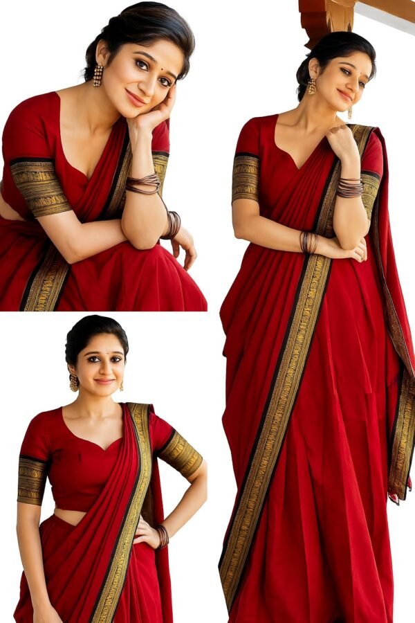 - TRADITIONAL ELEMENTS: Rich zari border work in gold adds royal touch to the base, creating a stunning contrast