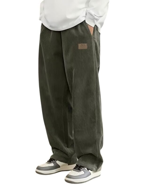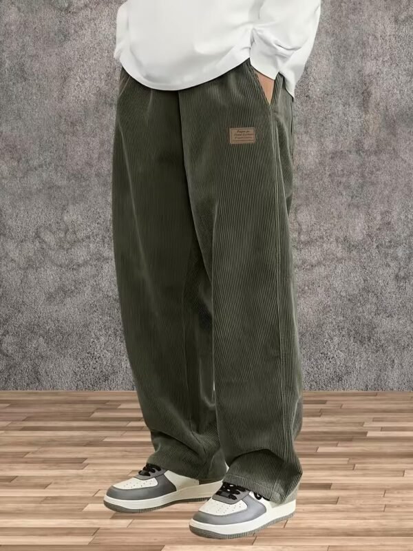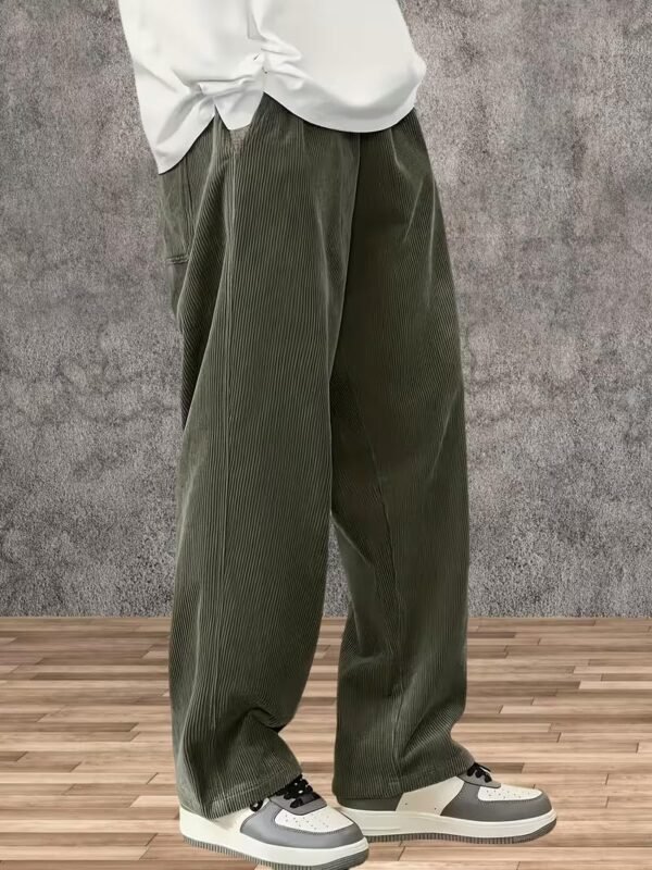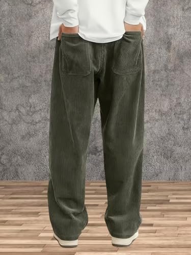 Samfor Men’s Comfortable Baggy Corduroy Pants | Relaxed Fit Stretch Waist Trousers for Everyday Wear | Casual Trouser for Man Green