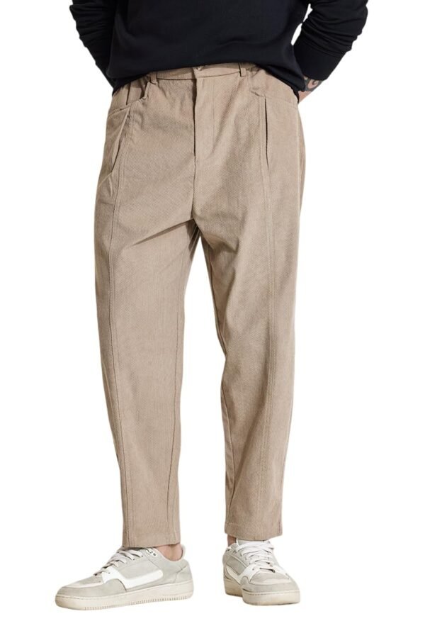 - TURNED-UP CUFFS: The turned-up cuffs add a stylish touch to these trousers, enhancing their modern appeal. The four pockets, including front slanted and back patch pockets, offer ample storage space for your essentials.