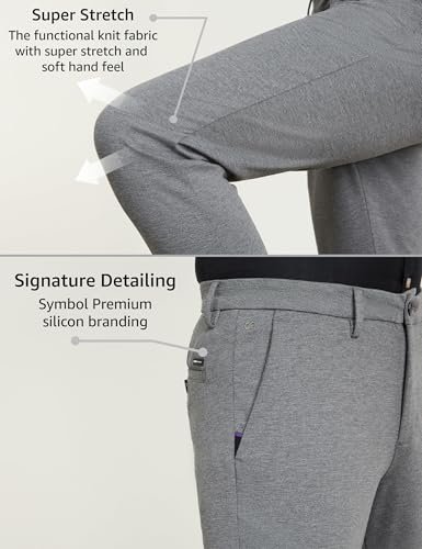 Symbol Premium Men’s Mid Rise Slim Fit Stretch Knit Pants – Smart Casual | Flexi Waist (SP-S24-M-CT-101_Dark Grey_36)