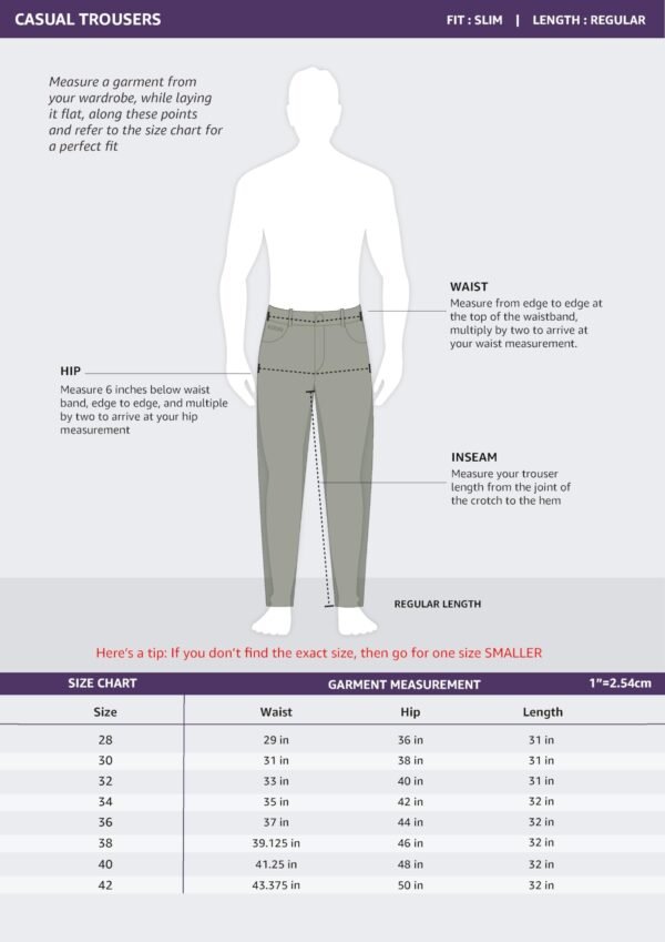 - An elasticated, expandable waistband with anti-slip gripper features helps in exceptional comfort, ease of movement, and a polished appearance