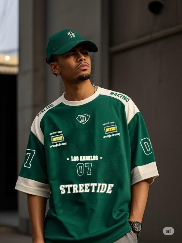 - Versatile Design for Every Occasion Featuring a half-sleeve, round neck style, this printed t-shirt for men adapts effortlessly to casual, sporty, or semi-formal looks. Whether you’re looking for a Green t-shirt for men or trendy korean t-shirts for men, the unique design blends urban and classic aesthetics, making it a wardrobe essential.