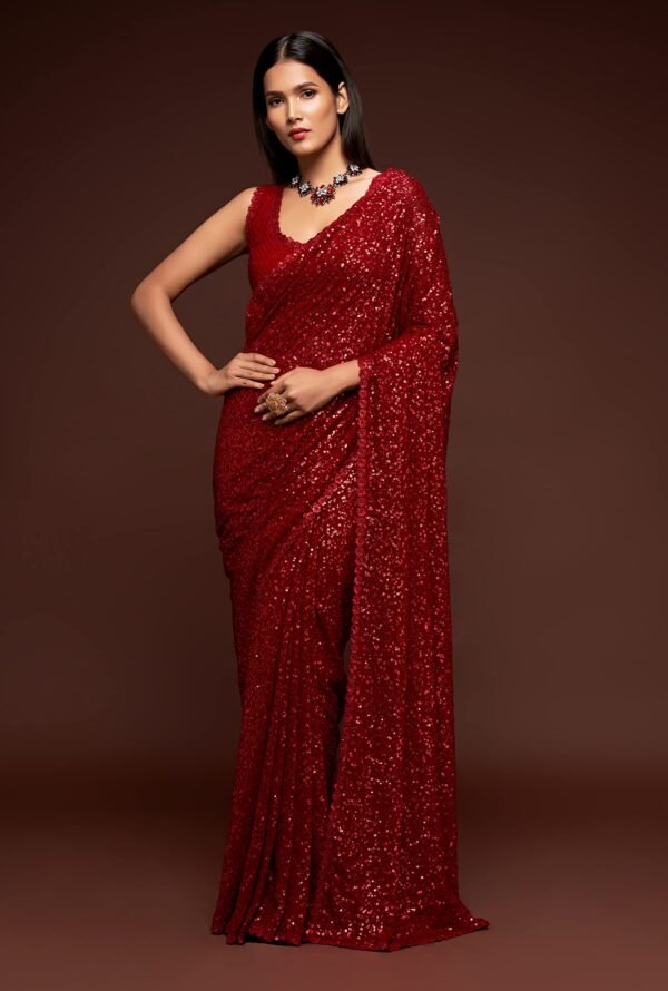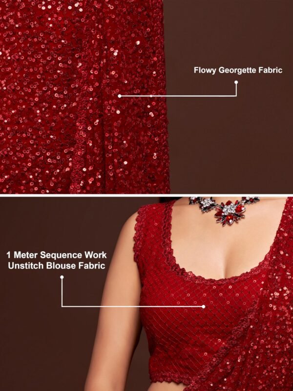 - Blouse Details: Color- Red, Material: Pure Georgette, Length: 1mtr, Work: Heavy Sequins