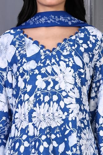 W for Woman Blue Floral Printed Lace Rayon Flared Kurta, Pants and Dupatta Set (Size: XXL)-WS13005-125923