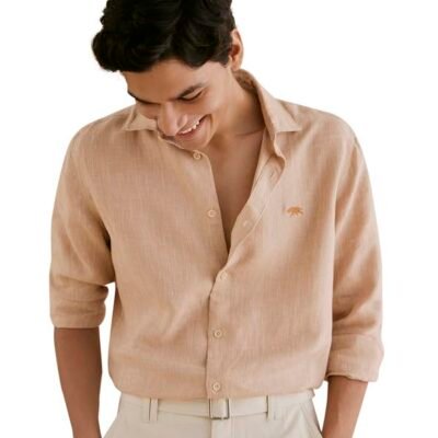 Andamen Men’s Casual Linen Woven Slim Fit Shirt Beige