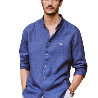 Andamen Men’s Casual Linen Woven Regular Fit Shirt Blue
